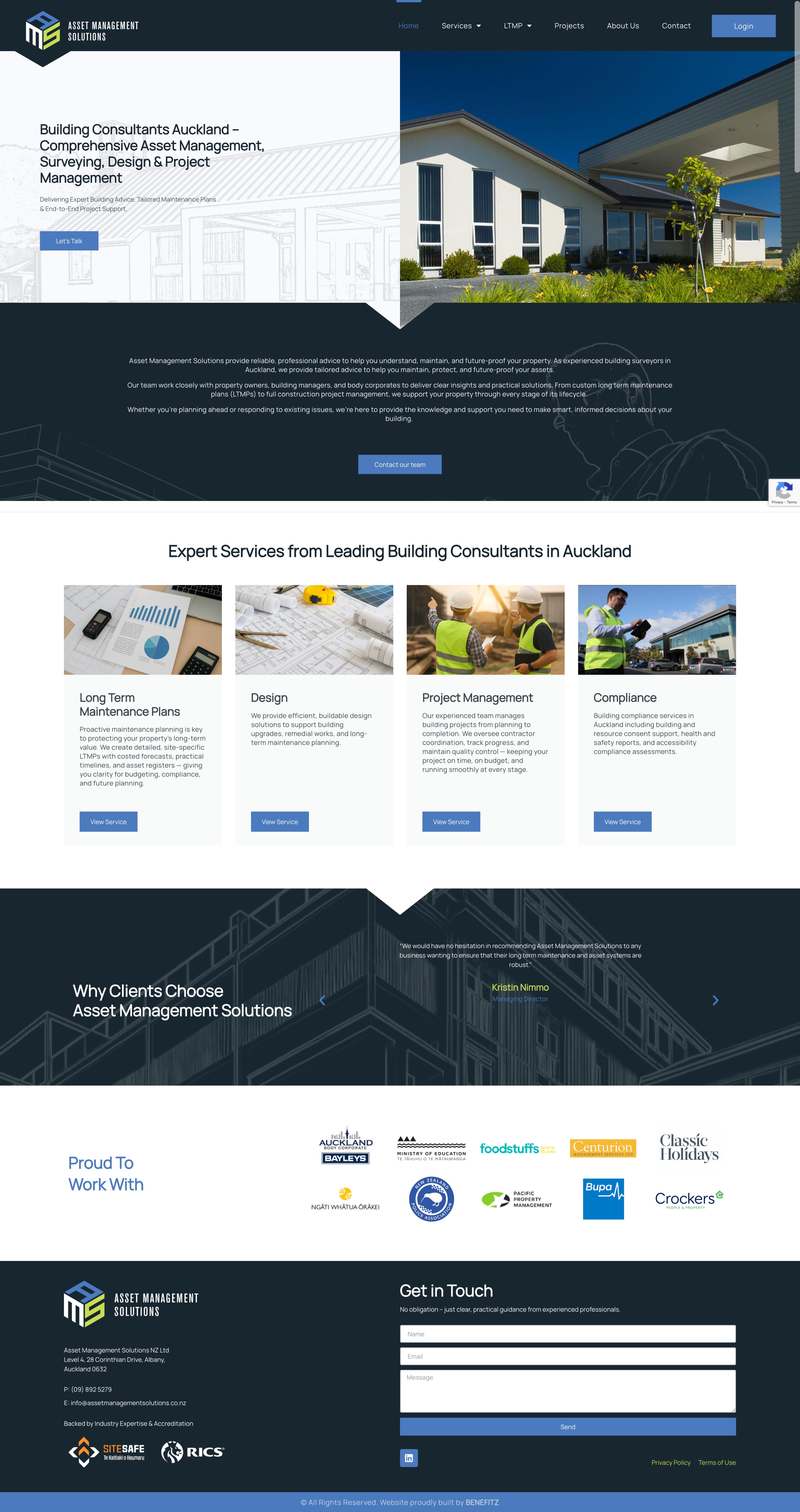 Benefitz created a professional, easy-to-manage website for Asset Management Solutions (AMS), a company specialising in facilities and asset management across New Zealand. The site clearly communicates AMS’s expertise in delivering tailored solutions for property owners, businesses, and organisations, with a strong focus on efficiency, compliance, and long-term value. Designed with a clean, modern interface, the platform makes it simple for visitors to explore AMS’s services, case studies, and industry insights, while giving the AMS team full control to update and manage content themselves. The result is a digital presence that reflects their reputation for reliability and innovation in asset management.