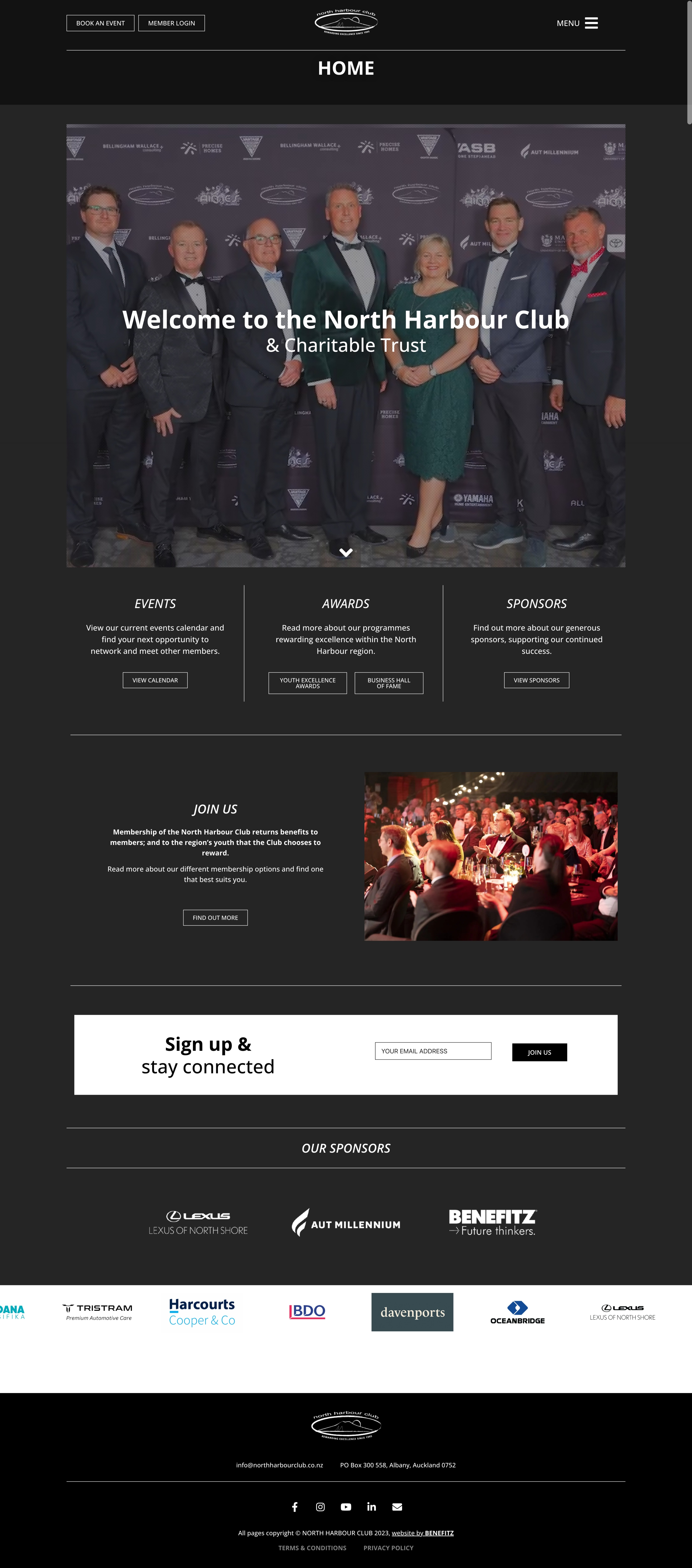Benefitz designed and developed a dynamic website for the North Harbour Club & Charitable Trust, an organisation dedicated to celebrating excellence and supporting youth achievement across the North Harbour region. The site highlights their flagship Youth Excellence Awards and Business Hall of Fame, while also showcasing upcoming events, membership opportunities, and sponsor contributions. Built with a focus on ease of management, the platform empowers the Club’s team to keep content fresh and engaging, ensuring members and visitors can easily stay connected, explore programmes, and learn more about the Club’s impact on the community.