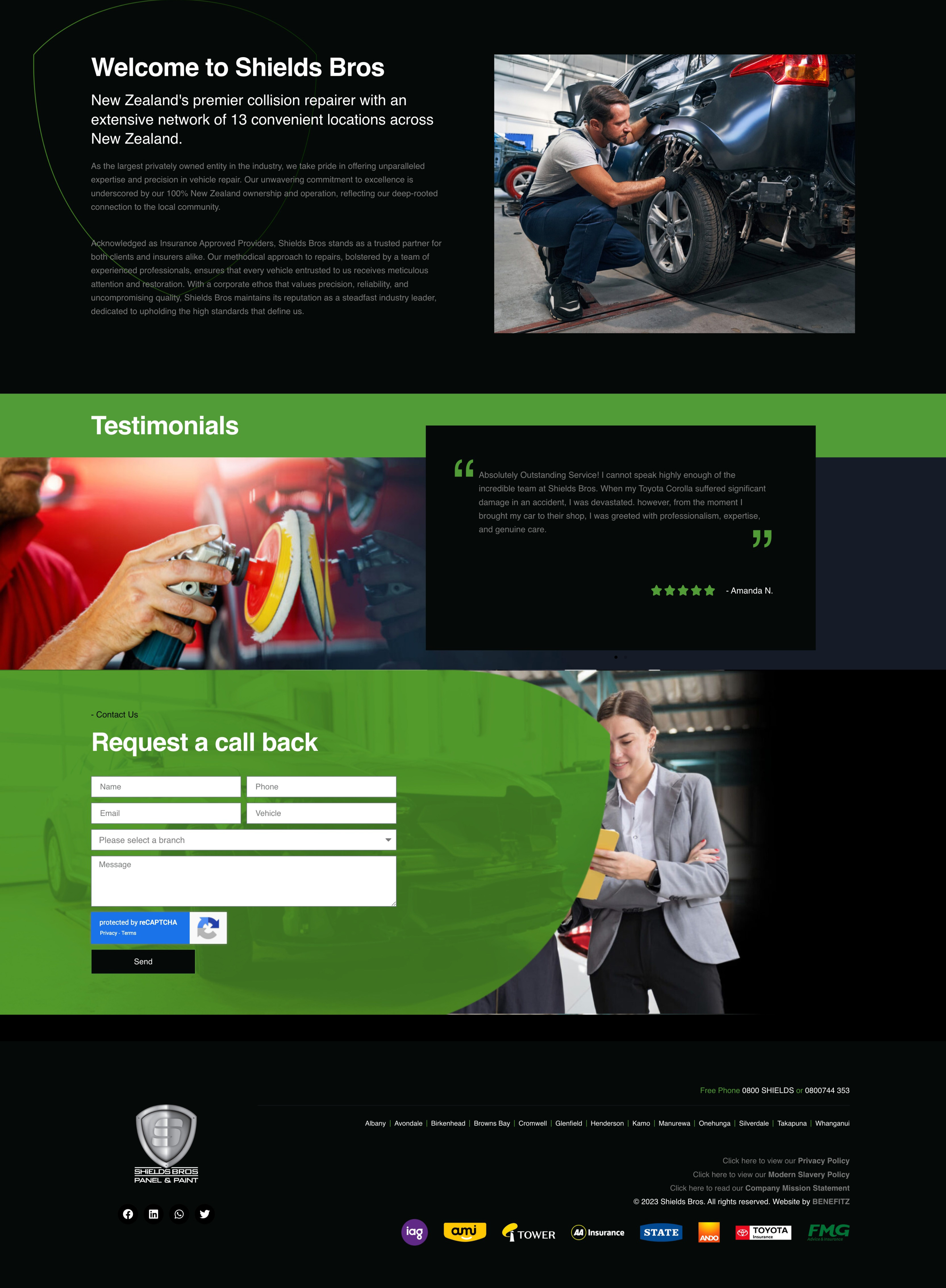 Benefitz designed and developed a modern, professional website for Shields Bros Panel & Paint, a trusted automotive repair and refinishing company based on Auckland’s North Shore. The site highlights their expertise in collision repairs, spray painting, and refinishing, while making it easy for customers to request quotes and connect with the team. Built with a strong focus on ease of management, the platform empowers Shields Bros to update services, showcase their work, and keep content fresh without relying on external support. With a clean design and intuitive navigation, the website reflects their reputation for quality workmanship and customer care, while delivering a seamless digital experience for clients.